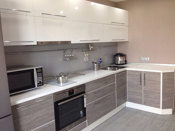 Интерьерное решение кухниДевчата, всем привет!!! Коротко о проблемке: кухню заказали верх белый глянец, низ дуб венецианский, столешница белый глянец, вот картинка, от которой отталкивались: