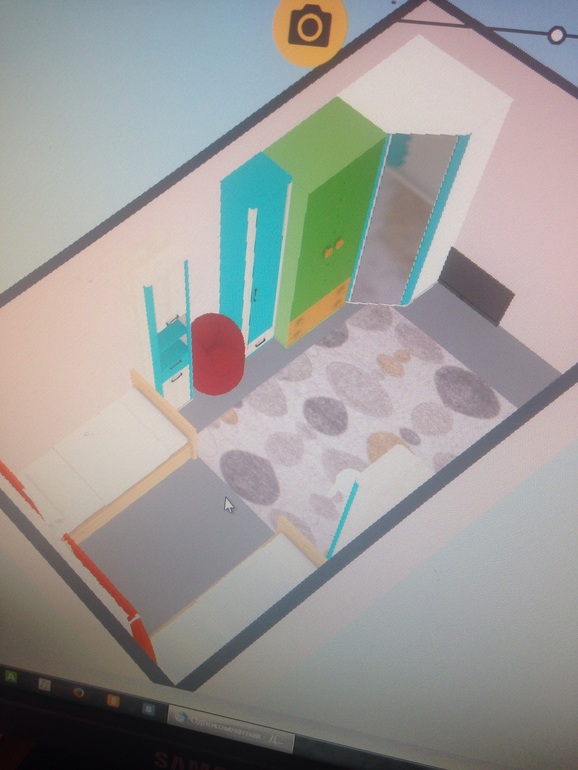 Дверь в "построениях". У нас примерно такая же комната. Я планирую у окна поставить стилаж с книгами (голубой у вас) и стол. Т.е. у окна рабочая зона. Дальше кровати по обе стороны. Еще подсказка. Скорее всего у вас есть стандартная программа "Ножницы", пользуйтесь ей при "фотографировании" экрана либо кнопочкой ПринтСкрин на клавиатуре. Телефонофото с монитора - ужас!!! Без обид!
