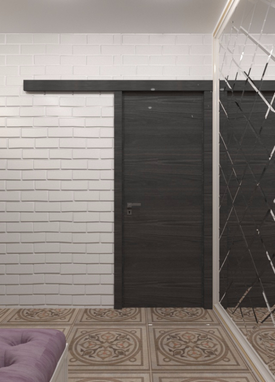 Если вы пройдете по ссылке в начале поста, то увидите, что во всех помещениях мы использовали почти такие двери, это связано с ТЗ, Мария указала, что ей нравится современный стиль, двери белый глянец и конкретное изображение с дверьми)