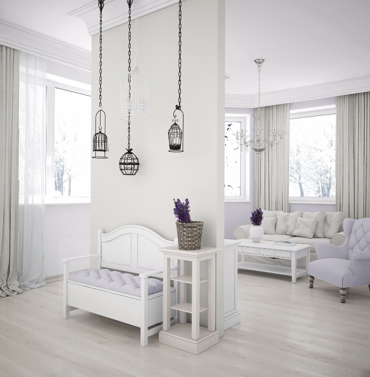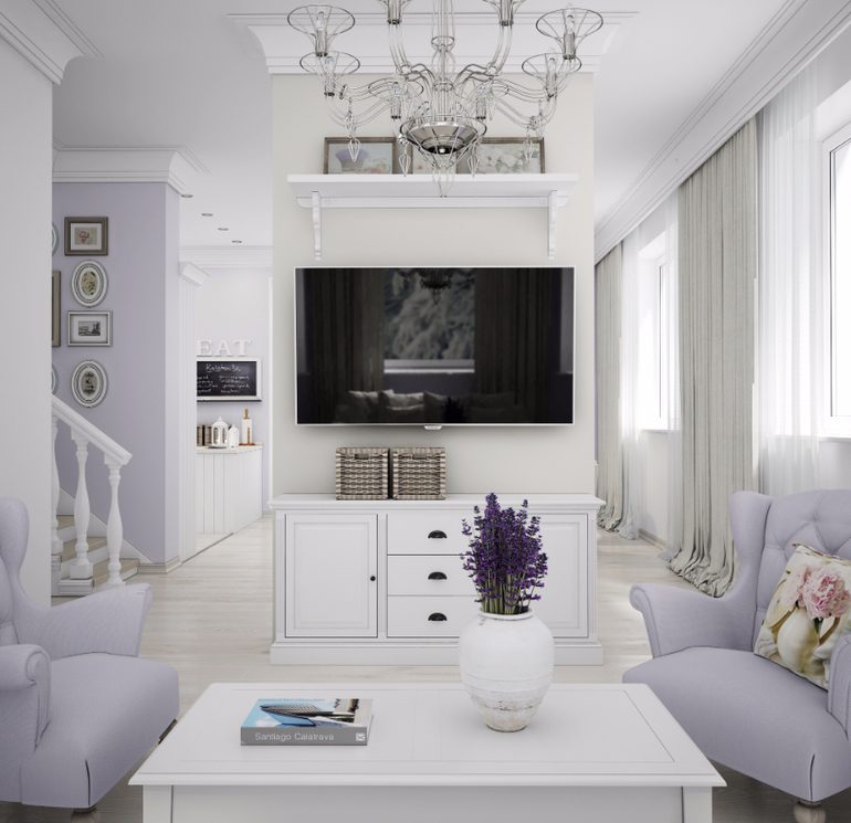 Второй вариант уже более классический, мы все дальше уходим от общего стиля и цветового решения квартиры.