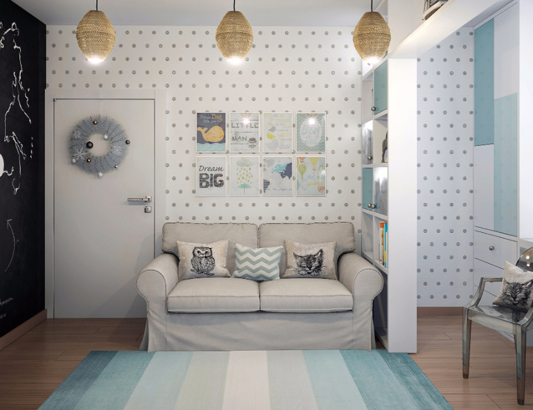 Или вот, например, кто помнит, недавний проект "Бурные 60-е". Там все шло совсем гладко пока мы не дошли до детской. Все 60-е ушли в тартарары, потому что маме, хотелось для любимого маленького сыночка прям нежности-нежности.