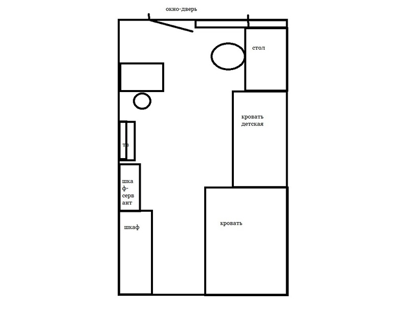 ну да, но близко телевизор смущает с кровати смотреть. а мольберт можно попробовать, но он загородит немного свет на стол и пока у меня ребенок 2 года может на 5 минут подбежать порисовать, повертеть фломастеры просто там например еще минут 5 и убежать, через 10 минут опять, то есть следить и таскать туда-сюда. подозреваю что не буду успевать и в итоге она будет часто находиться у балкона или этот мольберт будет мешаться посередке комнаты, уже так было, перегораживает совершенно. но похоже вариантов особо нет) если ставить тв к балкону то можно сесть на стульчик в угол образованый обеими кроватями, это вроде бы плюс. тв можно поставить на тумбочку на колесиках и после просмотра ставить ее вдоль стены, чтобы свет не загораживал. но расположение у окна конечно не очень, на свет смотреть, шторы занавешивать надо.
