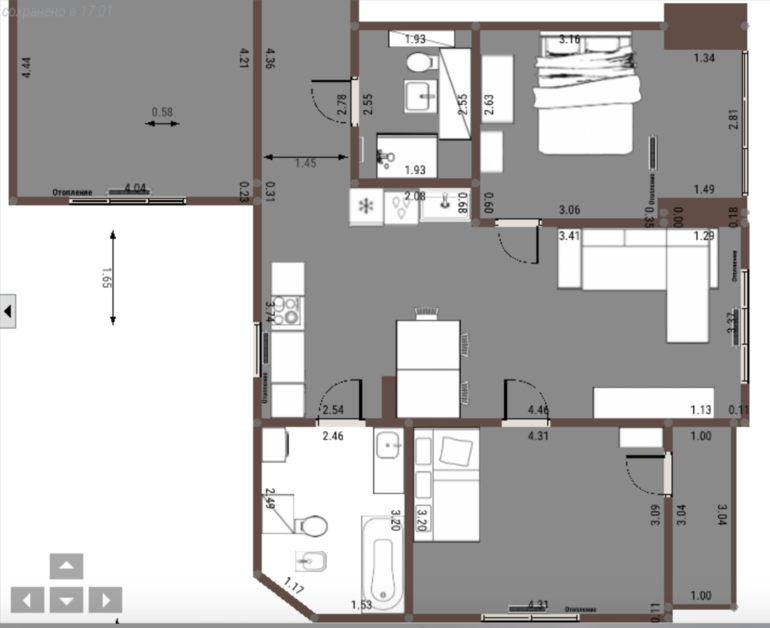 Жанна, вы в прошлый раз единственная кто предложил вариант, я сначала так и рисовала двери большого с/у и комнаты. но просто сейчас живем на съемной квартире и наша спальня такая же маленькая как вы предложили-ух летом дышать нечем, а зимой с отоплением жарко, хочется уже пространства больше