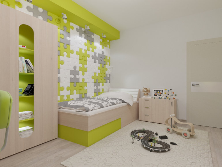 от зигзагов в комнате девочки рябит в глазах. Мне было бы не комфортно. А вот комната мальчика понравилась, с пазлами - оригинально и цветовая гамма приятная глазу