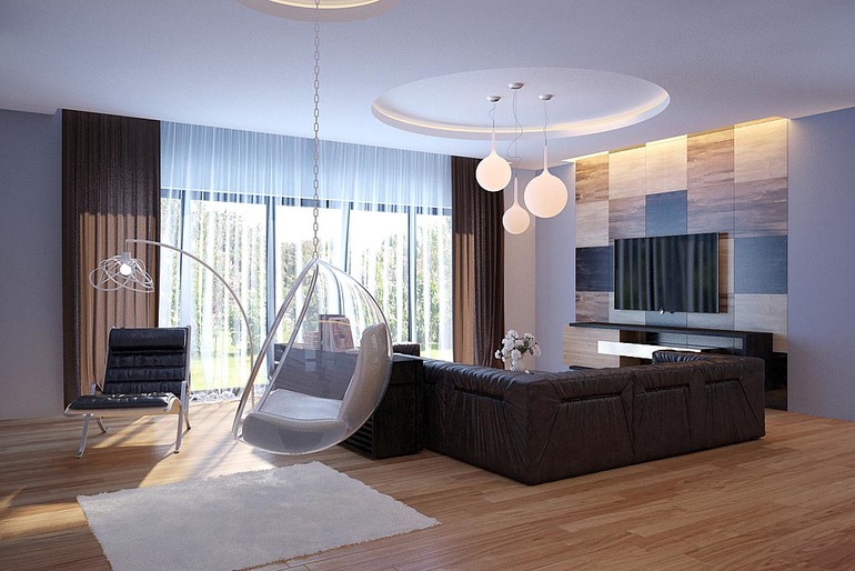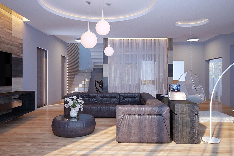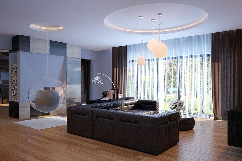 Хочу поделиться с вами визуальным решением гостиной в загородном доме.
