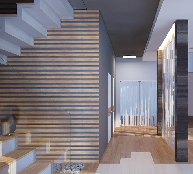 Вообще, это визуализация, как вы наверно догадались. Существует вариант крепления как сбоку, так и в сами ступени. Если, например, ступени из бетона, то снаружи. А если из дерева, то можно утопить в ступени и подсветить.