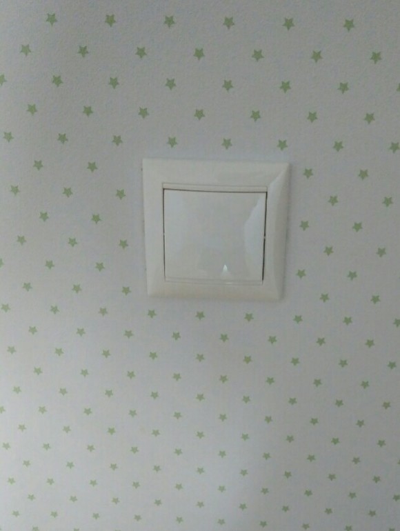 А обои,кстати не совсем белые)) в маааленькую звездочку салатовую,но когда заходишь ее не видно,не рябит.
