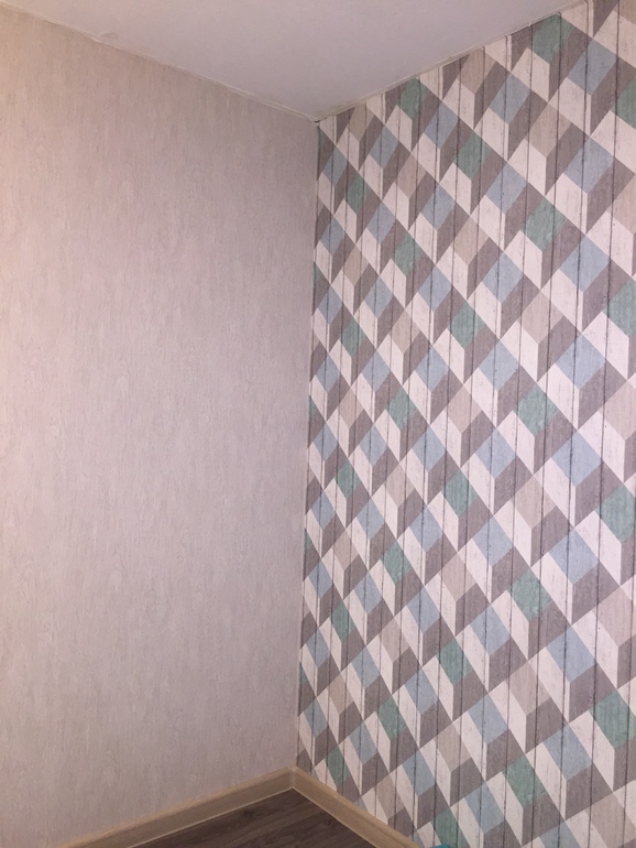 Но стена на которой окно оклеено такими же обоями, что и стена напротив, т е цветными.