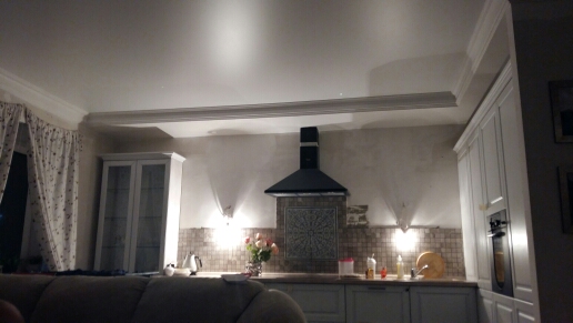 Кусочек гостиной в процессе ремонта ,муж был против точечных светильников. Сделали бра возле вытяжки.