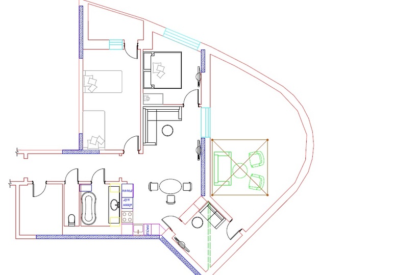 то можно больше народу уместить, и ходить будет свободнее. А не то - окно, если бы оно было там, где диван на балконе, то всем было бы лучше)) Можно, конечно, помудрить с разворотом стены, засчет детской, но не стоит. Лучше поворотный кронштейн взять для тв, или стеллаж с таким кронштейном.