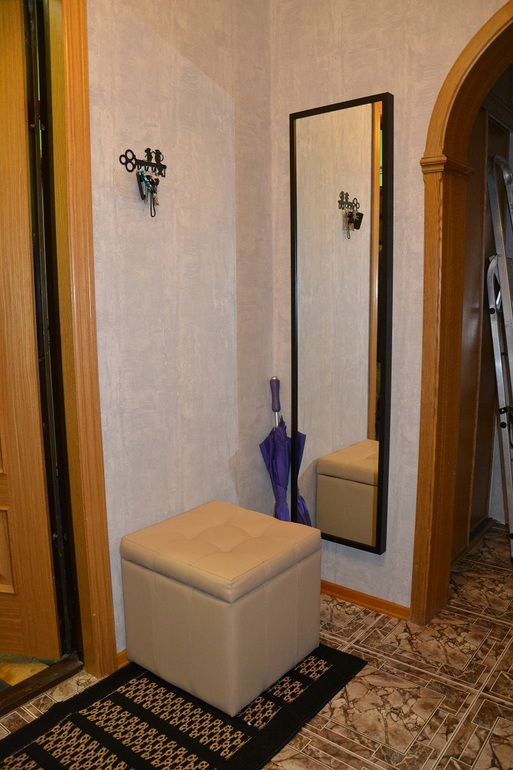 Пуфик классный, всегда о таком мечтала. У меня почти такая же планировка, правда вопрос с обувью решен по-другому: приобрела обувницу. Очень удобная вещь, несколько секций для хранения обуви (каждому члену семьи выделено)! Приятно, что доставили все быстро и в срок. В верхнем отделении у нас хранятся всякие мелочи (ключи и пр.), а то когда убегаешь из дома, вечно все теряется). В результате вся обувь в одном месте и при этом обувница компактная и узкая! Еще можно было сделать по индивидуальным размерам, но в нашу прихожую и так подошло идеально.