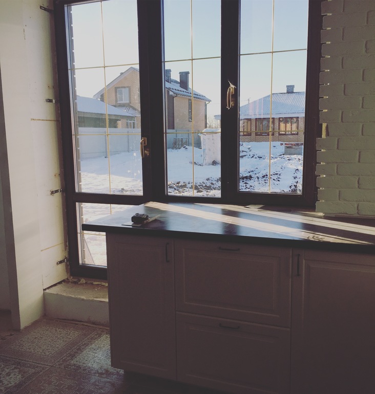 На фото кухня на которую хочется возвращаться))))интересно увидеть ее оформленной, особенно тот факт, что навесных шкафов не будет)С желтым кружочком тебя Альбиночка легких, счастливых и воздушных денечков!!!
