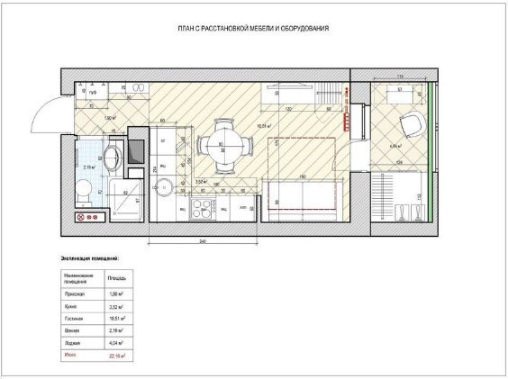 Думаю, главное, продумать все. Например, будут ли часто гости или нет. Если только для себя, я бы сразу поставила кровать 140, думаю, норм будет, если вы не очень большие люди :) потомучто каждый день диван собирать все равно никто не захочет, а кровать полезнее для спины. В изножье комод, телек, если нужен. Кухню с 2 конфорками, метра полтора максимум, на плане слишком большая, стол можно откидной, либо барную стойку, кровато отделить ширмой, панелями илипросто занавеской.