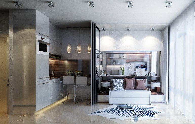 Ой, у меня муж несколько раз делал ремонты в таких крошках! Очень уютно и функционально получается, главное все заранее хорошо продумать. Я в одной была, там стол -барная стойка. Самое то! Очень удобно, места занимает мало и визуально разделяет пространство.