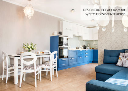 Из всех изменений в реализации максимально радикальным были синие фасады кухни- у производителя не было нужного нам цвета фасадов.