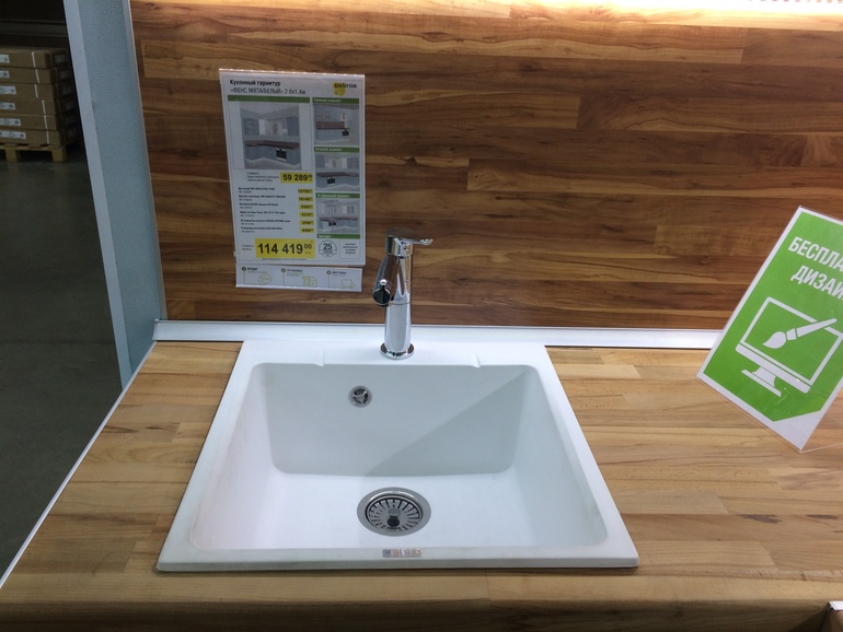Я очень хотела такую столешницу к белым фасадам. Но уже не помню, почему не сделала. Выбрали серый цвет столешницы, типа под цемент.