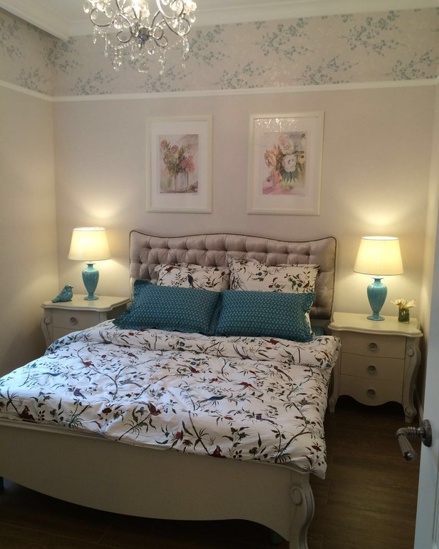 Спальня получилась очень уютной, незаграможденной, что очень важно! И постельное белье красивое)
