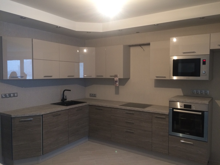 Интерьерное решение кухниДевочки, помогите советом. На днях мне собрали кухню, наглядеться не могу. Но вот встал вопрос, надо найти плитку на фартук. Но не знаю какую. Очень сильно боюсь испортить. Кто, что скажет?