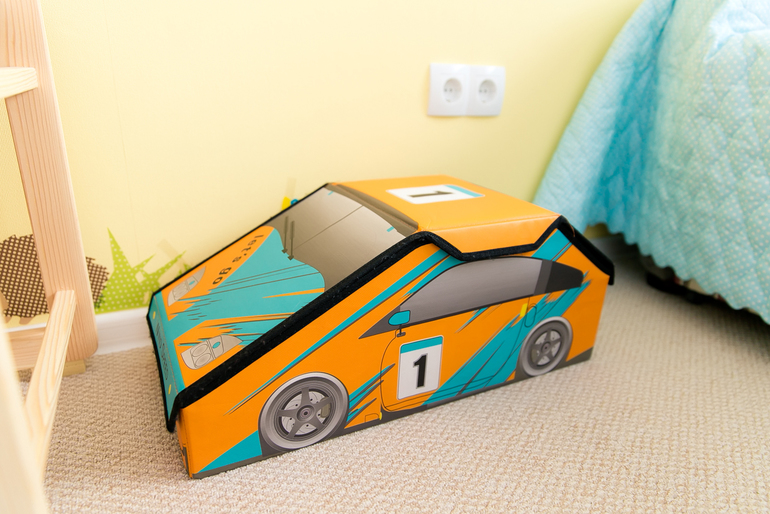 Есть у нас такая вот супер-крутая штучка - коробка для игрушек-машинка. Удобнее я пока не встречала! У нее спереди 1 большой отсек, и в "багажнике" - поменьше. Чем хороша эта машина, что она невысокая, даже еще ползающий ребенок без проблем может открыть крышку и добыть нужное "сокровище". Все мелкие (и не только) игрушки хранятся здесь, организовывая тем самым порядок в комнате.