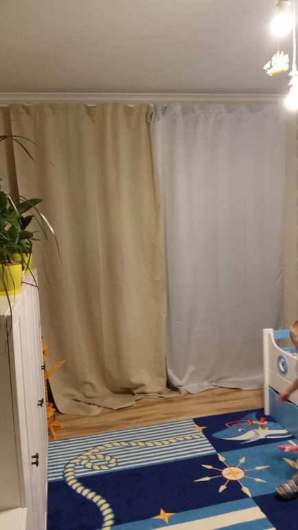 Полосатые шторы заказа на Али. Подшили указанную длину, мне очень нравится. Вам даже можно похожие сверху ваших кремовых. Сетку думаю еще покрутить-повертеть