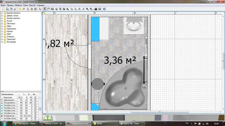 Или вот вариант с угловой ванной 120*120, можно и 135*135, влезет, но в ней расход воды почти на 50л больше...что-то жадность меня губит. В магазине лежала я и в 120 и в 135, обе хороши.