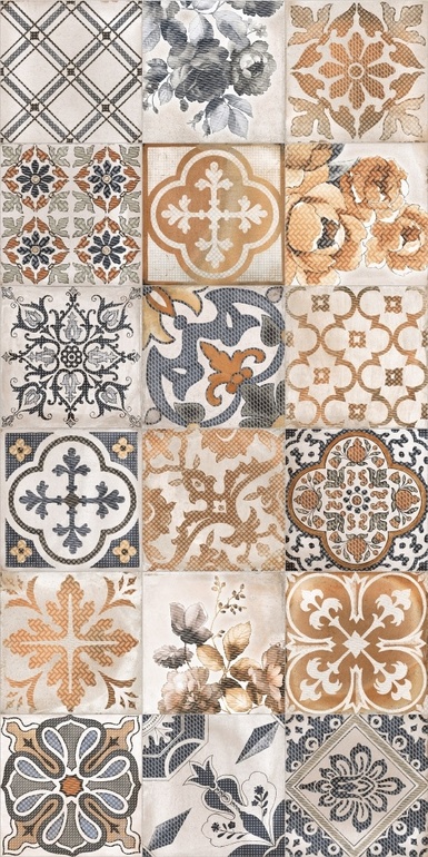 Есть, ищите плитку в стиле пэчворк. Но мало, в основном импорт. Она ж как декор как правило используется, поэтому дешёвой не будет.