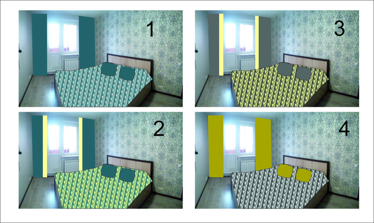 Декор окон. Текстиль. Жалюзи.Помогите, пожалуйста, определиться с цветом будущих штор и покрывала в спальню. Вот, что имеем и свои соображения на эту тему.