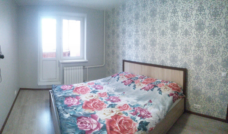 Это спальня. На противоположной стороне стоит шкаф с зеркальными дверями, цвет дуб сонома, комодик, в будущем появятся прикроватные тумбочки и в углу, слева от окна, столик туалетный для меня.