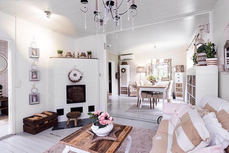 Пол жизни жила в таком маленьком доме. Родители сами построили. Маленькие окна не высокий потолок. Рюшечки на окнах, шторочки вместо фасадов или дверей, покрывала, подушки, перины, голубая кухня, плитка разноцветная 10на10, обои в цветочек, железные кровати... (перечислять можно долго)... до сих пор обхожу стороной прованс. По моему мнению лучше минимум мебели, рюшек, чехлов на стулья и тп. Больше света, светлых стен, дерева, камня и фактуры. И минимум мелких декоративных штучек-пылесборник еще тот. А в доме, мне кажется, пыль почему то быстрее появляется, чем в квартире. Ваш пример на фото мне нравится.