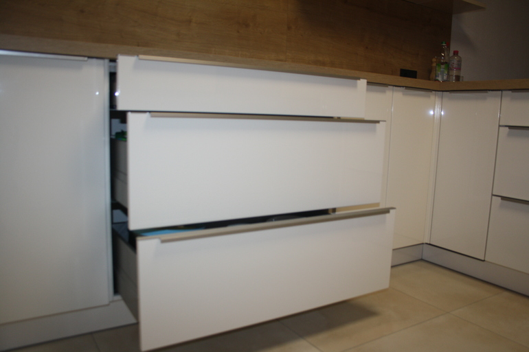 Красотища!!! Сколько шкафов))) Все все понравилось, у меня тоже выдвижная мусорка-это сказка. Только стеклянные фасады не понравились не люблю я их. Поздравляю с переездом
