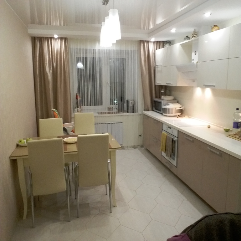 какая хорошая современная кухня у вас! Тоже так хочу светлую...диванчики вот смотрела в инете очень красивые светлые! вдоль стены...с одной стороны стола диванчик современный узкий, с другой 2 стула...или больше...у вас сколько квадратов?