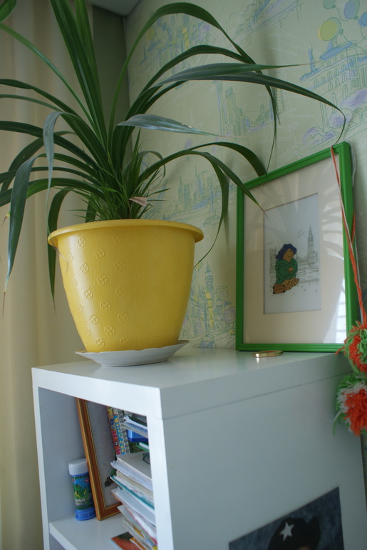 Акцентным цветом я выбрала желтый, но в процессе появилось синее кресло (подарили) и синяя палатка (недавнее приобретение)