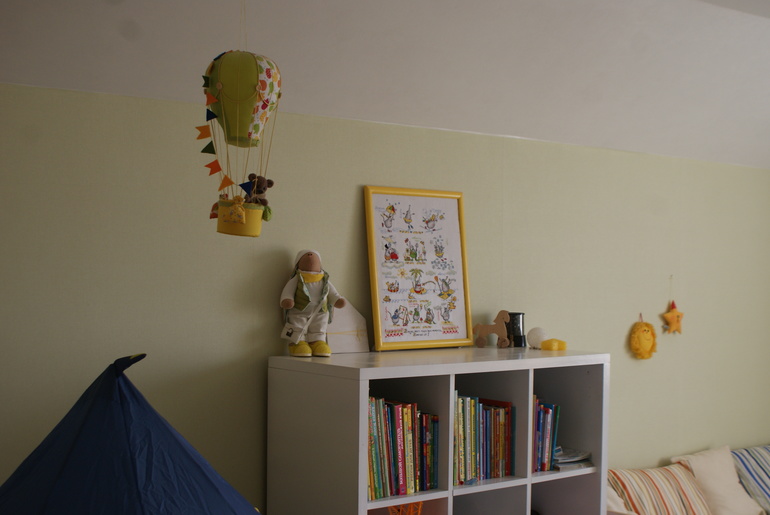 Сегодня покажу детскую старшего сына. На тот момент когда мы сдали ему эту комнату "под ключ" ему исполнилось 5 лет, сейчас 6,5. Комната 20 квадратов, прямоугольная. У нас свой дом, комната на втором этаже, поэтому по одной стене скошен потолок.