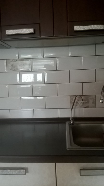 Интерьерное решение кухниПокажите у кого фартук на кухне "кабанчик" цвет белый, нравится? затирку какую лучше использовать белую или темную?