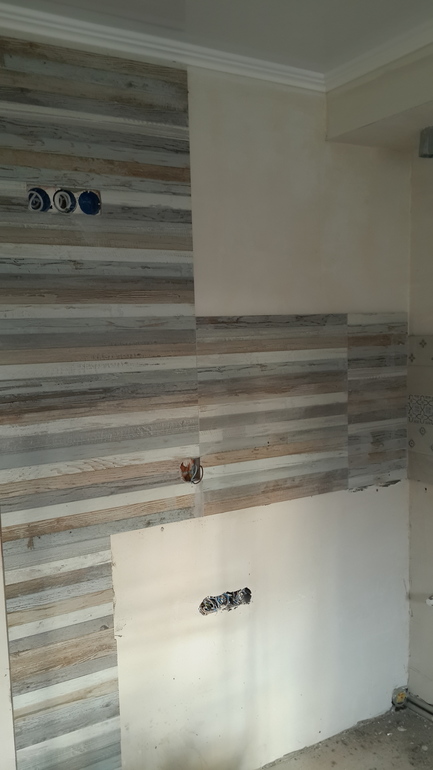 Тоже пытались этот ламинат положить вашим образом, но смутило,что швы плиток не сходятся вообще, нам было заметно и сделали вот так))