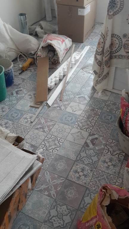 Всё о полах , стенах, потолках и материалах для нихРаньше я хотела кухню с глянцевыми фасадами бирюзового и белого цвета.... но потом встретила пол, и влюбилась. Как мне теперь кажется, то что я хотела раньше, больше не актуально... уже готов фартук над рабочей зоной, и фартук перед столом. Какую кухню по стилю и цвету заказывать? Классику? Фото не очень, но можно примерно понять. Со цветопередачей беда )))) как вам кажется, пол и фартук подходят друг другу?