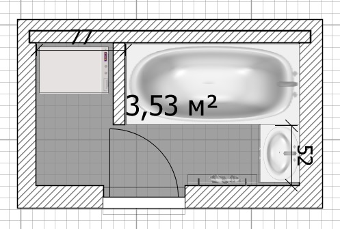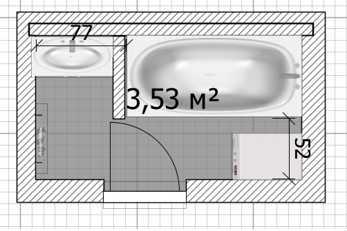 Когда по факту нарисовали все линии на полу, оказалось, что между ванной и стиралкой такой маленький проход, что если со стиралкой что случится, мы никогда ее не сможем вытащить, чтобы починить...
