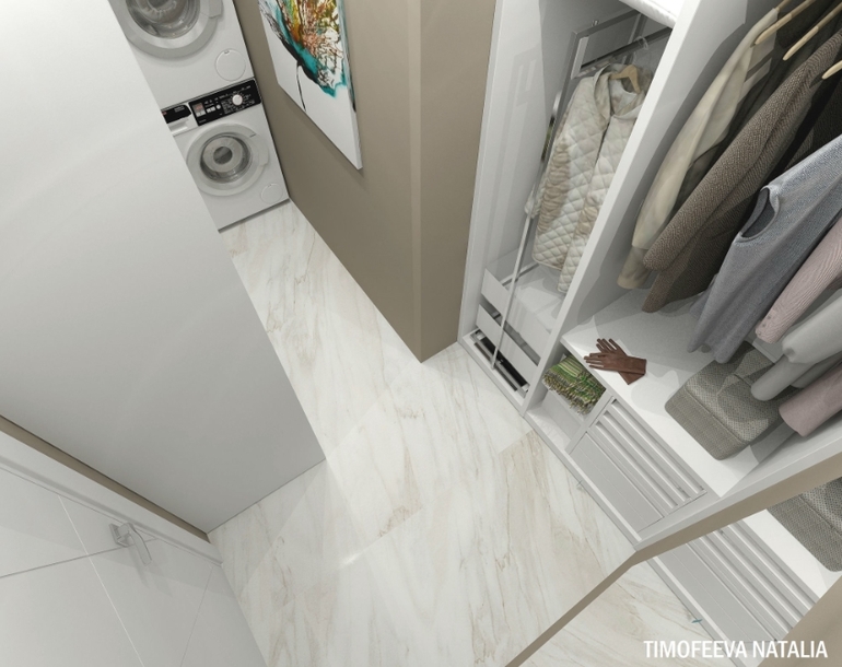 Высота СВЧ стандартная. Рядом расположена гардеробная комната, от открытой вешалки при входе хозяйка отказалась.