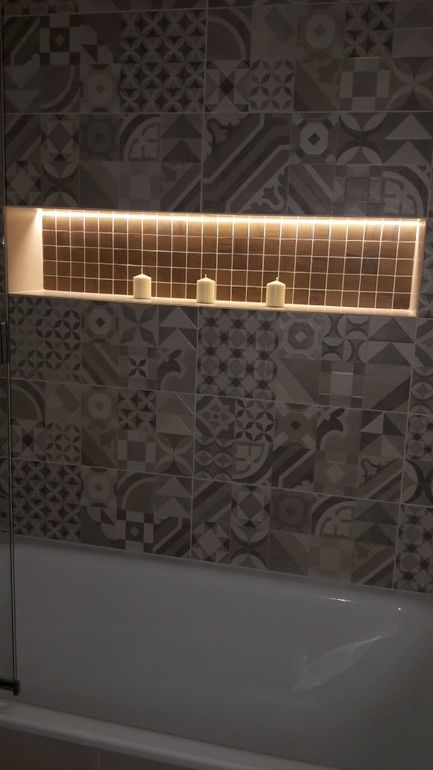 на самом деле плитка бежевая, все дело в освещении))серой не было в наличии