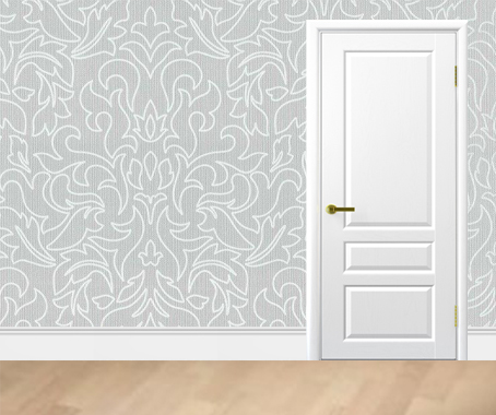 Обои точно такой же фактуры, что и в прихожей, но с узором. Мебели не предполагается. Только двери в комнаты и санузлы.