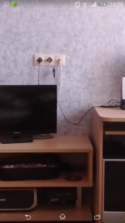 Да первым делом этот вариант рассматривала. Ноооо, высота розеток ни туда ни сюда. Даже повышенный телевизор эту ситуацию не спасет