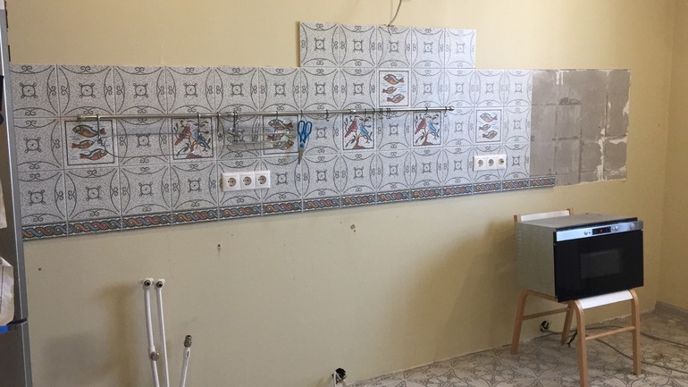 Пока монтировали старую кухню , плитка со стен , наш фартук ,обвалилась 😳😱