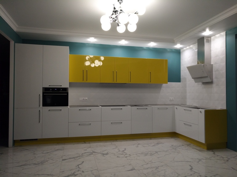 Очень красивый дизайн и кухня просто шикарна))) Фасады МДФ эмаль? Прокрас с двух сторон или с одной? Если не секрет сколько обошлась?