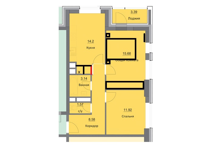 Очень хороший район и застройщик. Муж теперь не желает ничего больше слышать и настаивает на этом варианте. Но меня очень смущает общая комната, т.к. я даже не представляю, что в ней можно поставить. Я эту комнату называю дырявой, т.е. одна стена - дверь, вторая - дверь на балкон, третья - два окна, так они еще их позиционирают как панорамные, но после уточнения сказали, что 60 см. от пола начинаются окна.