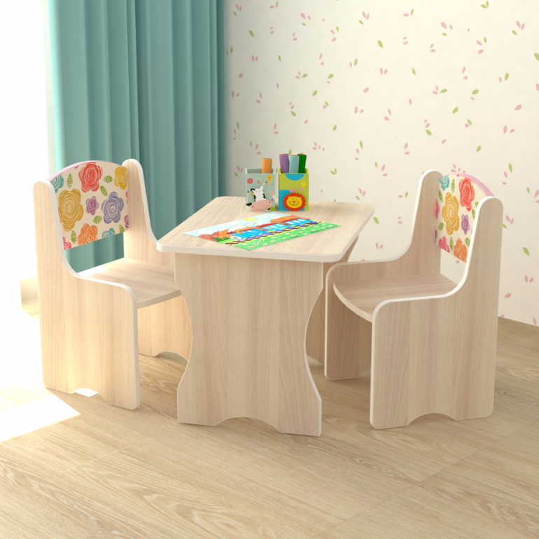 I m toy посмотрите фирму. Там идет светлый стол для рисования с оранжевой вставкой и стульчик к нему. У нас такой)