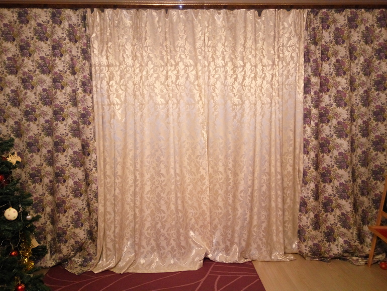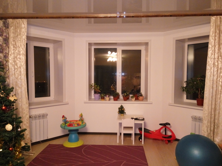 В интернете нигде даже примера такого оформления не встречала, не знаю по каким мотивам так сделали прошлые хозяева квартиры. Со дня въезда мечтала исправить на трационное "карниз вдоль окон" (гнутый металлический профиль)..а сейчас не знаю почему застопорилась..мужу все равно, что будет с окном, ему итак сойдёт, буксую только я) вот сижу сейчас, смотрю на них и думаю, вроде и так хорошо...или будет лучше? (Если таки точно потолок сменю, то добавила бы только доп. точечный светильник в эркере)