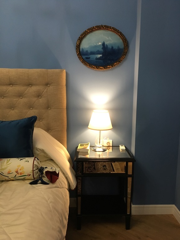После бежевой квартиры, в новой душа просила цвета) Выбор пал на синий, мой любимый цвет. Муж, спасибо ему за это практически не вмешивался в дизайн спальни, хотя без его участия не обошлось. Вообще муж и ремонт уникальная тема, не знаю почему мы ее не обсудили. Писать красиво как и фоткать я не умею, так что сухие факты.