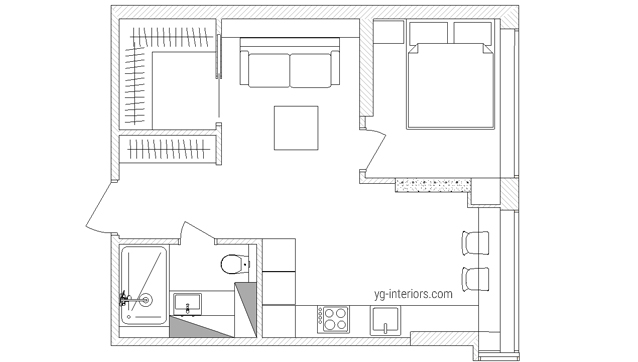 Крошка квартирка 40 кв. метров для молодой женщины.