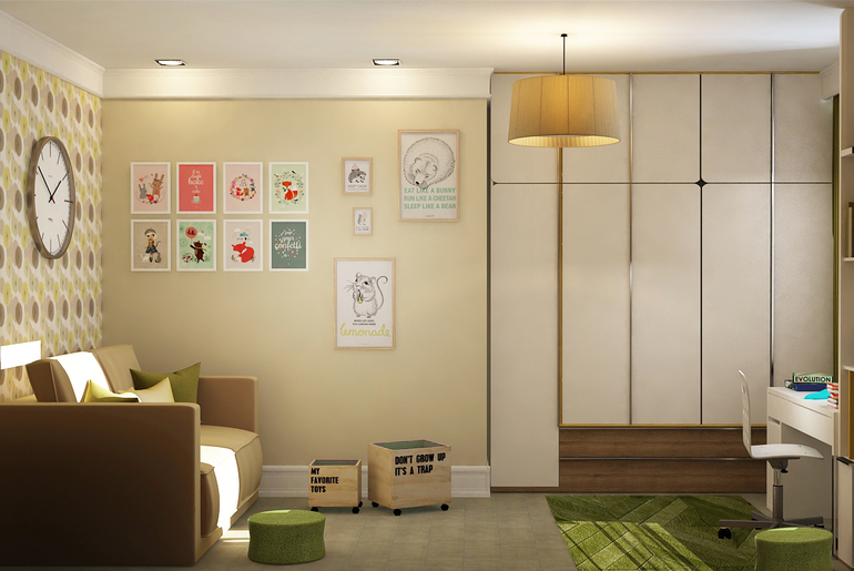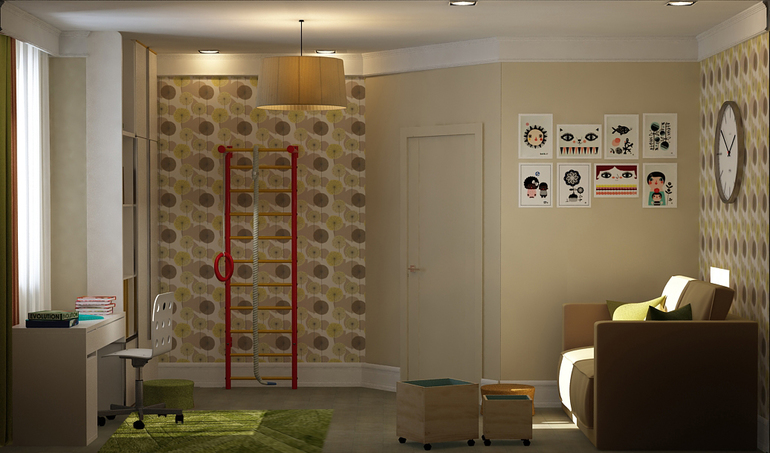 Поэтому я хотела нейтральный так сказать интерьер, не сильно детский.