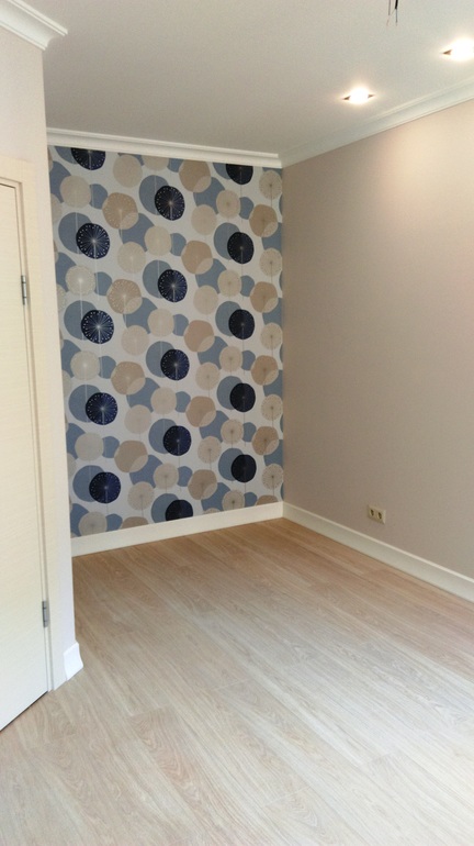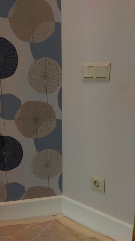 Но когда дошло дело до ремонта уже было лето и к моему большому сожалению данные обои были сняты с производства, а никакие другие я не хотела. Обзвонила кучу точек и нашла 3 рулона в остатке но другого цвета. Так наша комната из желтой стала голубой )))